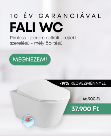 Mellékhelyiséged berendezéséhez széles választékban kínálunk több stílushoz és igényhez igazodó wc csészéket, legyen szó perem nélküli, fali, alsó vagy hátsó kifolyású megoldásról, integrált vagy különálló bidékről, illetve felső vagy hátsó bekötésű piszoárokról is. Fürdőkád tekintetében sem kell kompromisszumot kötnöd, amennyiben tőlünk szeretnél választani: a legkisebb kiviteltől a hatalmas sarokkádakig válogathat akril kádjaink között. Amennyiben a zuhanyzót részesíted előnyben, nézzen körül zuhanykabinjaink, zuhanyajtóink,-falaink, zuhanytálcáink között, majd válassz ezekhez illő zuhanyrendszert vagy zuhanyfejet. Kínálatunkban különböző stílusú zuhanyfüggönyöket is talál, amennyiben ezt szeretnél vásárolni, illetve épített zuhanyokhoz zuhanyfolyókákat is kínálunk, a tökéletes kialakítás érdekében.