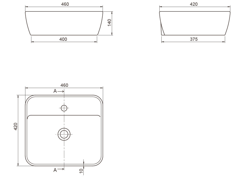 CeraStyle ONE - PULTRA ültethető - Top Counter mosdó - - MATT CAPPUCINO - 46 x 42 cm
