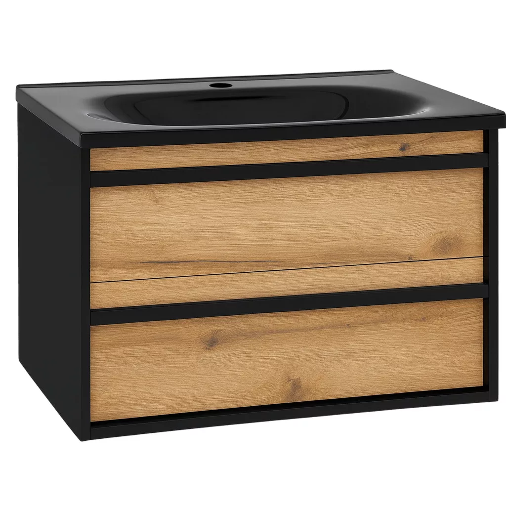 Piramida EURIDIKA OLIVA-FEKETE - fali fürdőszobabútor fekete mosdóval - 75 x 53 x 48 cm