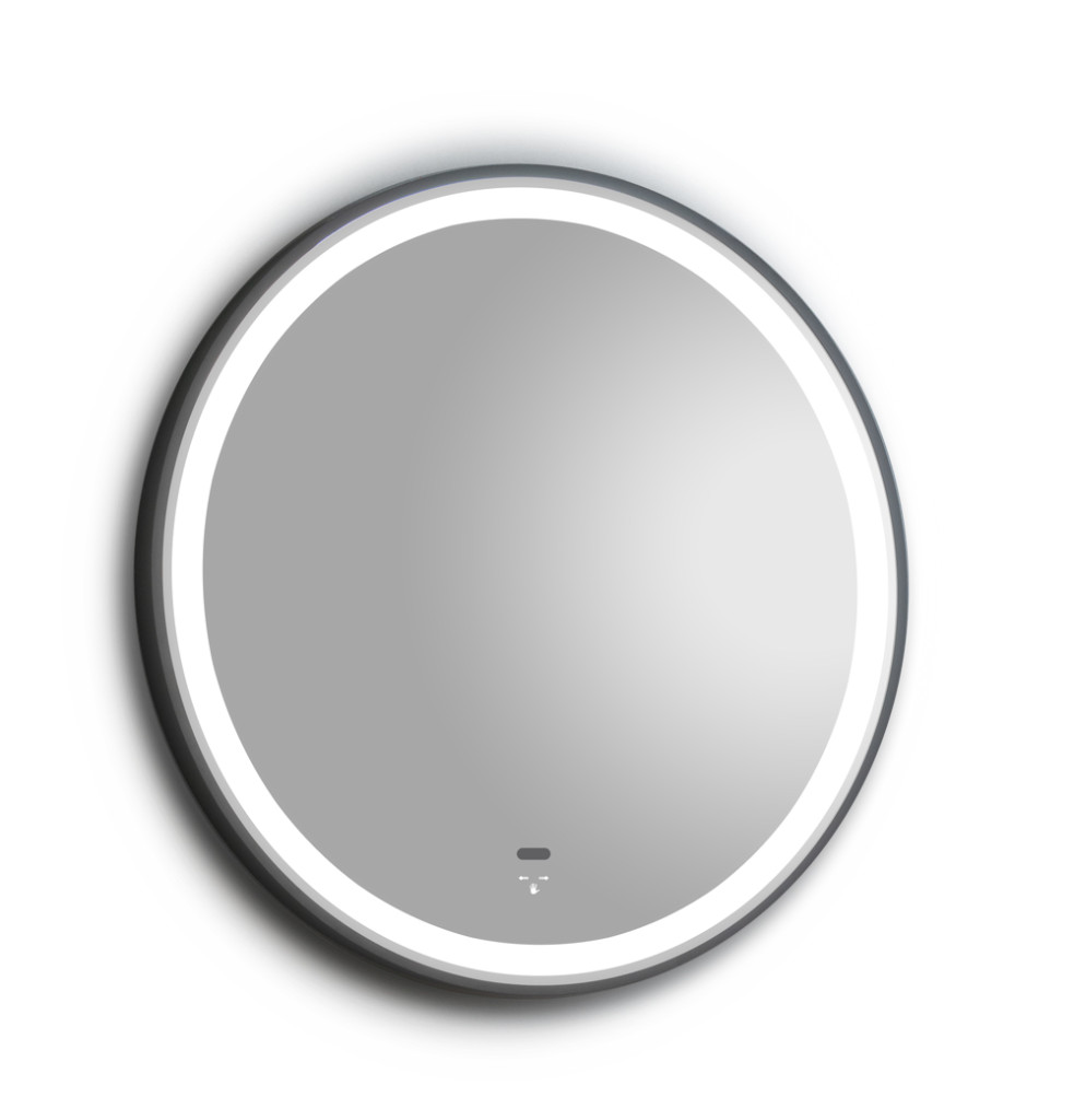 TMP IRON fürdőszoba tükör - FEKETE keret - kerek - LED világítással - érintésmentes kapcsoló - 70 cm