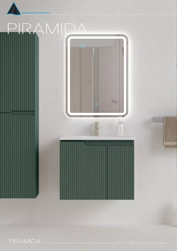 Piramida EURIDIKA fali fürdőszobabútor - műmárvány mosdóval -2 ajtós - PINO ZÖLD - 65 x 48 x 53 cm