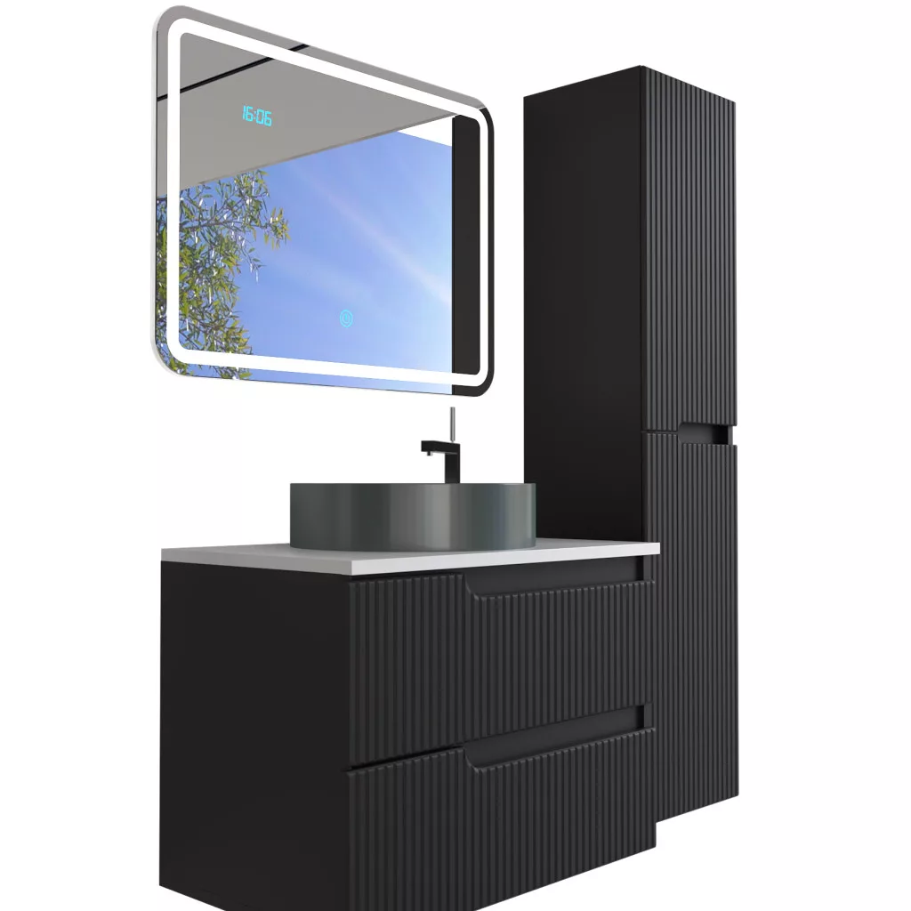Piramida EURIDIKA fali fürdőszobabútor - mosdópult mosdó nélkül -2 fiókos - PINO FEKETE - 75 x 48 x