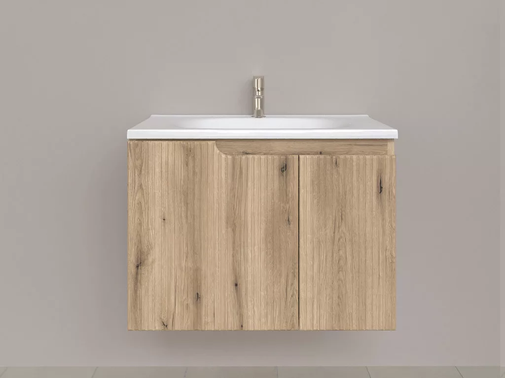 Piramida EURIDIKA fali fürdőszobabútor - műmárvány mosdóval -2 ajtós - PINO TÖLGY - 75 x 48 x 53 cm